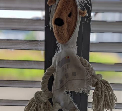 es ist schon ein Wunder , dass es überhaupt überlebt hat. Dieses Plüschtier wurde als Pitbull geprüft eingestuft und wir hatten schon einige Plüschtiere (Bilder werden folgen), aber das hier hat fast eine Woche gehalten und dann war Schluss.